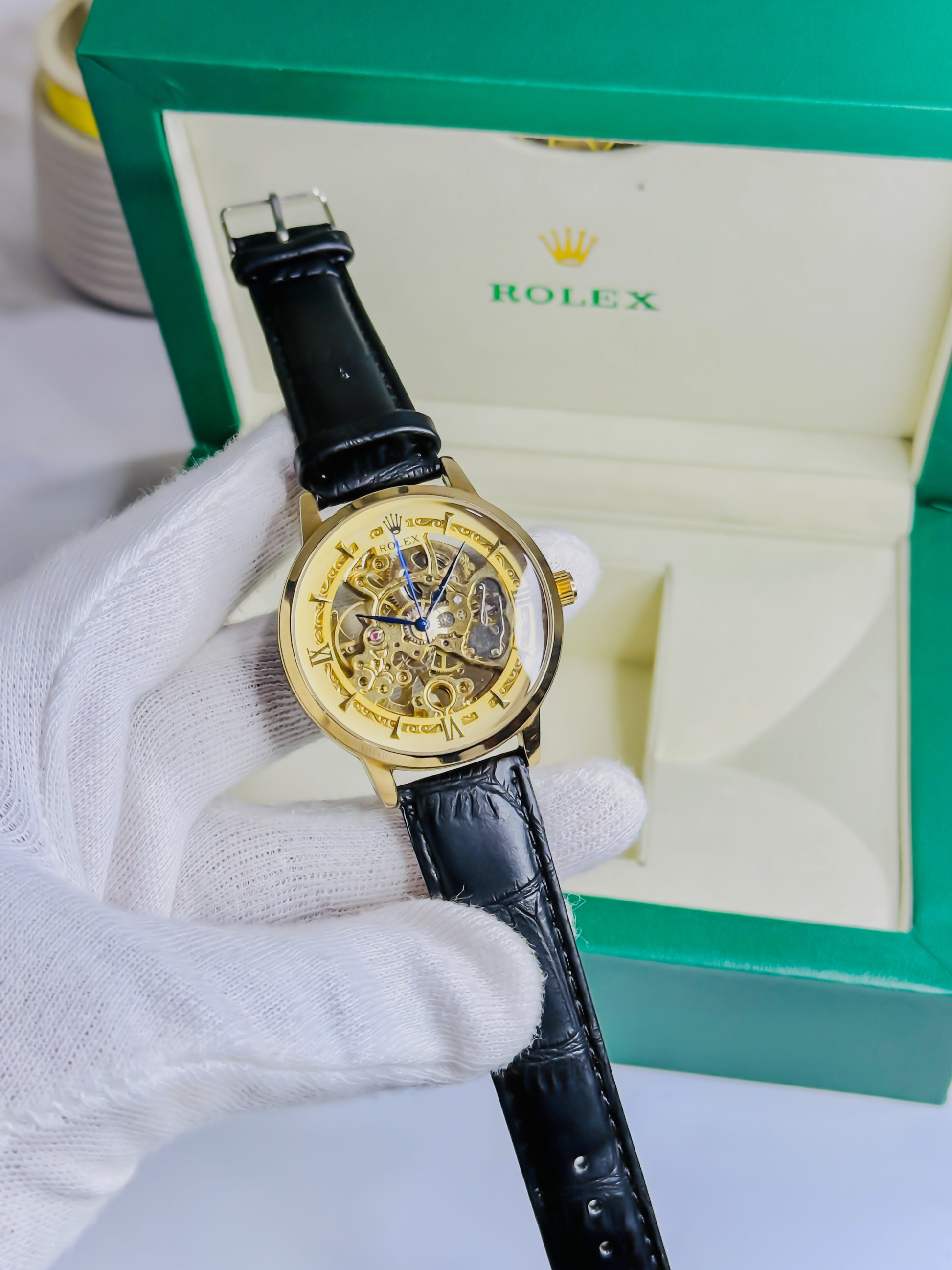 Rolex Automatic Skeleton - Black Leather Edition